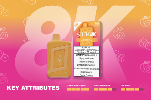 Pick up a STLTH 8K Disposable vape in Juicy Peach Ice from your local vape retailer or order online through our website for fast and secure delivery.