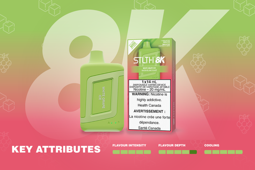 Grab a STLTH 8K disposable vape in White Grape Ice from your local vape Store or order online through our website for fast and secure delivery.