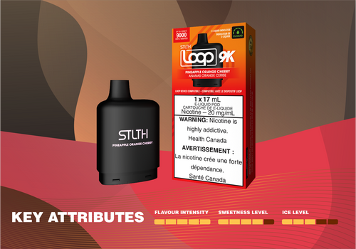 Pick up a STLTH LOOP 9K Pod in Pineapple Orange Cherry from your local vape retailer or order online through our website for fast and secure delivery.