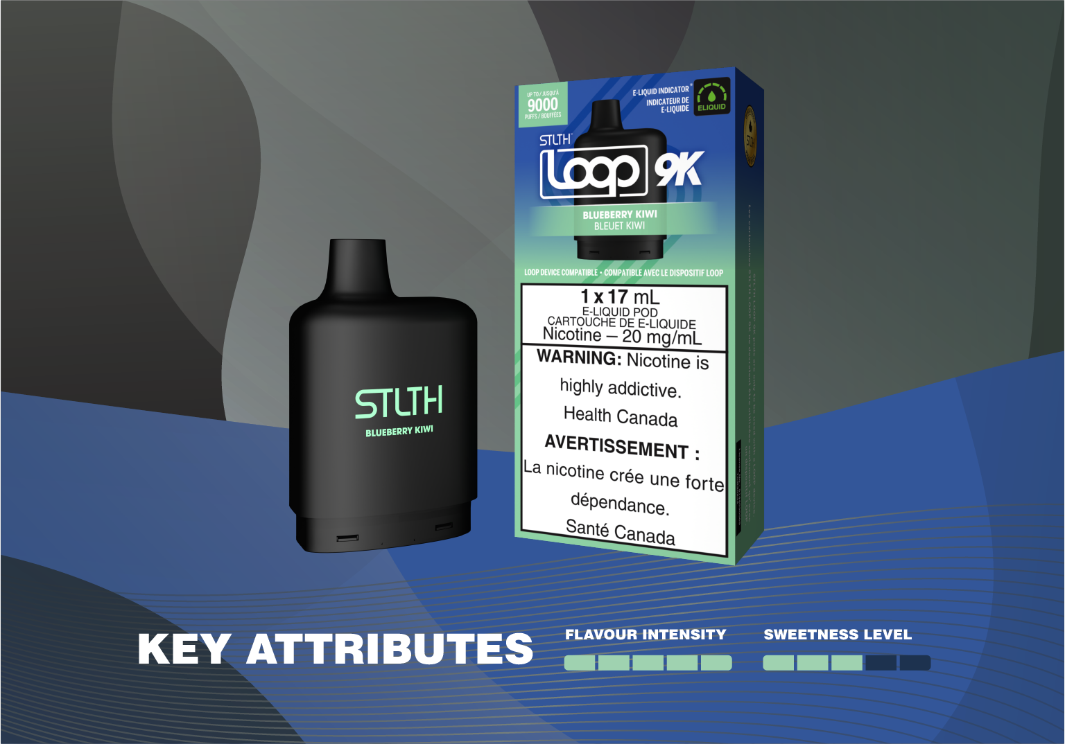 With 17mL of e-Liquid while delivering up to 9000 puffs, the STLTH LOOP 9K Pods can communicate with the STLTH LOOP 2 Device to display e-Liquid levels on a LED screen. Savor the tropical trio of Pineapple, Orange, and Cherry. Tangy pineapple and citrusy orange with sweet cherry and a touch of ice.